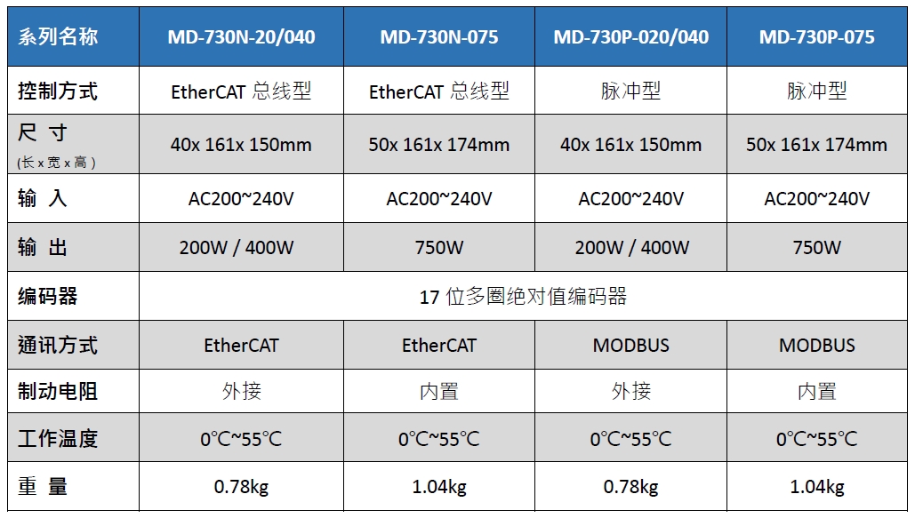 MD-730系列: 200W~750W伺服驅動系統