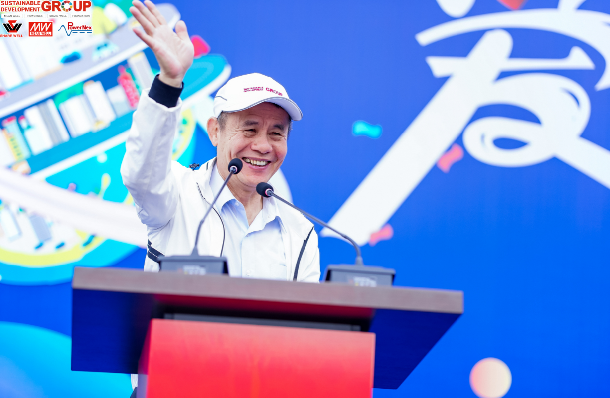 我們的大家長,SDG集團創辦人林國棟先生作開幕致詞。他表示,2006年生產的第一臺 MEAN WELL Power Supply代表著未來上億臺Power Supply。最初跟著公司發展的20位同仁也已深扎明緯,明緯的二代也在逐漸步入明緯,持續發揮著永續發展的力量!